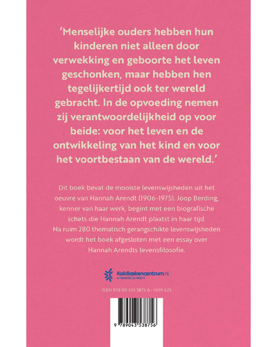 Hannah Arendt Levenswijsheden, samengesteld door Joop Berding, verschijnt in een nieuwe serie inspirerende geschenkboeken. Het kloeke formaat, de fraaie gebonden uitvoering en de thematisch gerangschikte quotes maken dit geschenkboek onweerstaanbaar. Het boek begint met een biografische schets die de auteur plaatst in haar tijd, en wordt afgesloten met een essay over de levensfilosofie van Hannah Arendt. Deze serie geschenkboeken voorziet in een behoefte naar toegankelijke levenswijsheid.