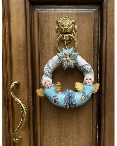 Kerstkrans hand- en milieuvriendelijk gemaakt in Oekraïne, handgeschilderd